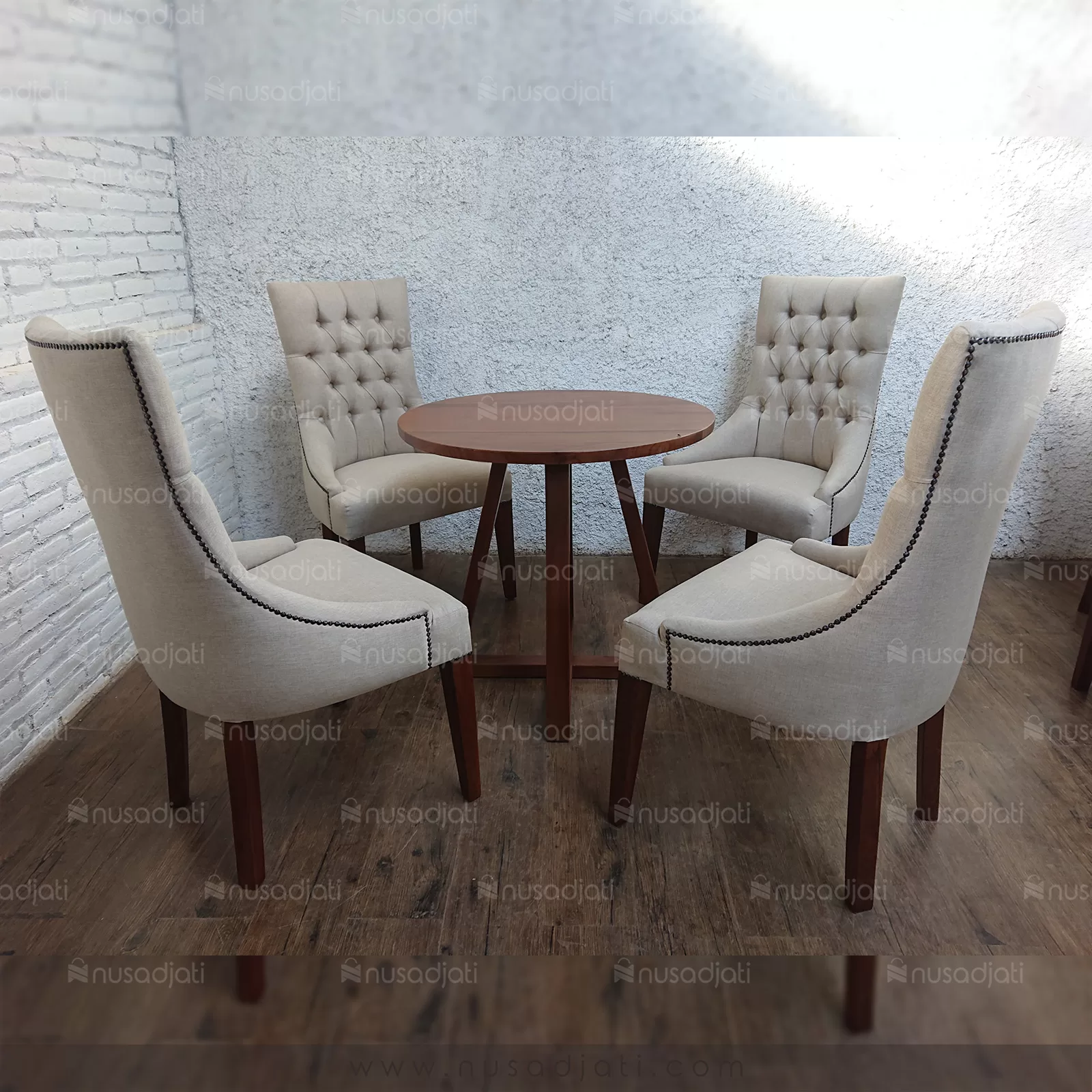 Dengan perpaduan antara keindahan dan kenyamanan, kursi ini menjadi pilihan ideal bagi mereka yang mencari gaya dan fungsionalitas dalam furnitur makan mereka. Nusadjati Furniture memastikan bahwa setiap produk mereka menjalani proses produksi yang teliti, menghasilkan furnitur yang berkualitas dan tahan lama.